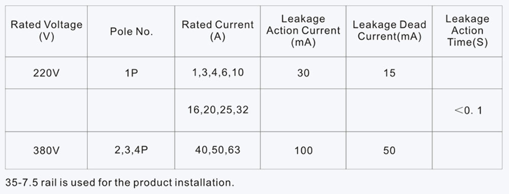 ♦เหมาะสำหรับวงจรเครือข่ายการกระจายที่มี AC 50Hz, แรงดันไฟฟ้าทำงานที่ 400V และต่ำกว่าและปัจจุบันมีการจัดอันดับปัจจุบันที่ 63A และต่ำกว่า;