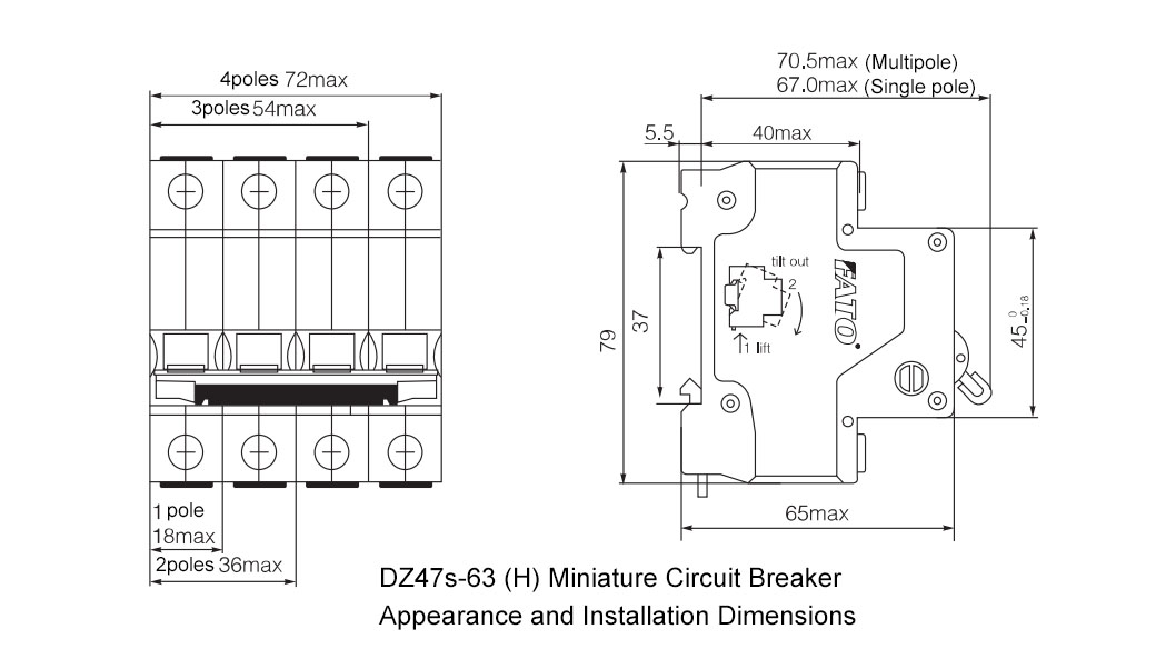 เบรกเกอร์ขนาดเล็กของ DZ47S-63 (H) ได้รับการออกแบบมาเพื่อป้องกันการโอเวอร์โหลดและการลัดวงจรในระบบไฟฟ้าที่มีความถี่ AC 50Hz คะแนนแรงดันไฟฟ้าสูงสุด 230/400V และระดับปัจจุบันสูงถึง 100A นอกจากนี้ยังสามารถใช้สำหรับการสลับเส้นและอุปกรณ์เป็นครั้งคราวในสภาพการทำงานปกติ ผลิตภัณฑ์นี้สอดคล้องกับมาตรฐานต่อไปนี้: IEC60898-1、 GB10963.1