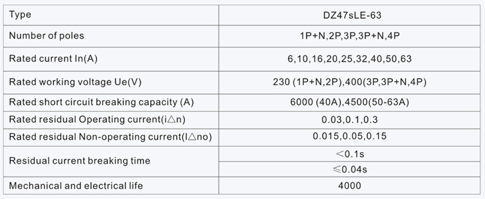 DZ47SLE-63 Series Earth Leakage Circuit Breaker เหมาะสำหรับวงจร AC 50Hz/60Hz ที่มีแรงดันไฟฟ้าสูงถึง 400V และจัดอันดับกระแสสูงถึง 63A มันสามารถตัดแหล่งจ่ายไฟที่ผิดพลาดได้ทันทีเพื่อปกป้องความปลอดภัยส่วนบุคคลและอุปกรณ์ไฟฟ้าในโอกาสช็อกไฟฟ้าส่วนบุคคลหรือกระแสรั่วไหลเกินค่าที่กำหนด นอกจากนี้ยังสามารถป้องกันวงจรและโอเวอร์โหลดหรือลัดวงจรของอิเล็กโตรมิเตอร์ใช้สำหรับการเปลี่ยนแปลงไม่บ่อยนักและเริ่มต้นในวงจร